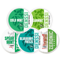 The mixpack includes five fan favorites: Denssi Blueberry Freeze for a sweet and icy fruit sensation, Denssi Cold Mint delivering an invigorating freshness, Denssi Spearmint with its smooth minty charm, Denssi Spearmint Zeronic for a nicotine-free option that still satisfies, and Denssi Watermelon Freeze Zeronic combining sweetness with an icy chill. Together, these pouches form a complete flavor journey — fruity, minty, cool, and gentle.